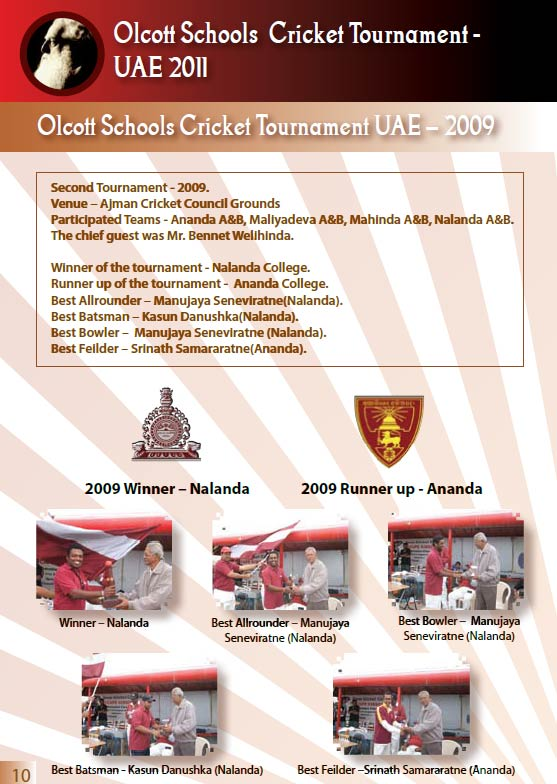 The 2009 edition of the Olcott Schools Cricket Tournament was a memorable event that showcased the talent and sportsmanship of the participating teams. Held at the Ajman Cricket Council Ground, the tournament brought together teams from Ananda College, Nalanda College, Maliyadeva College, and Mahinda College, with each school fielding both “A” and “B” teams.